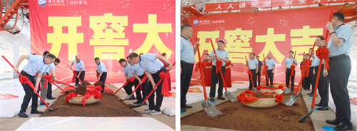 吉時一到,一面“開窖大吉”巨幕從池口上方倏然拉開,鄭步軍、張德佳邀請市場嘉賓揮锨起醅,在一聲聲激揚的吉祥話中,基地22800口窖池全面進入頭排酒開窖生產階段。