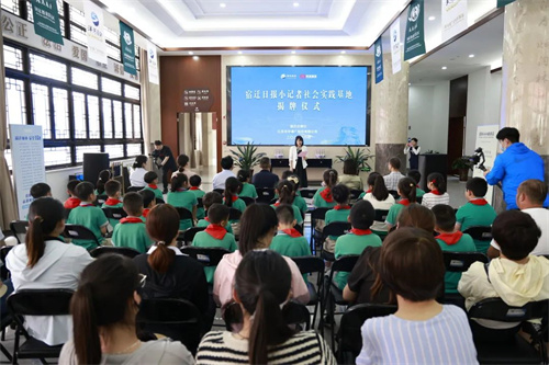 在三方的共同見證下,吳繼碩、劉學(xué)為宿遷日?qǐng)?bào)小記者社會(huì)實(shí)踐基地揭牌。
